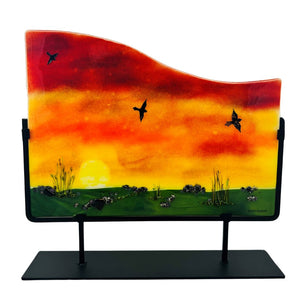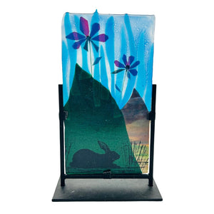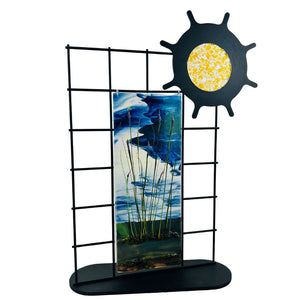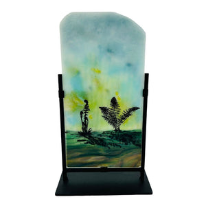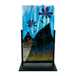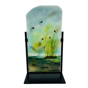 Mitzi Kugler is a Pacific Northwest glass artist. Kugler fuses layers of glass pieces in multiple firings to create her unique glass tableaux, and then uses lampworking techniques to create intricate glass landscapes and natural scenes. Kugler's work is alive with texture and three-dimensional elements, inviting viewers to escape into her vision of living glass. Each piece is accompanied by a custom frame Kugler crafts out of upcycled metals. To learn more about the artist, please visit mitzikart.com